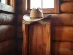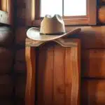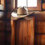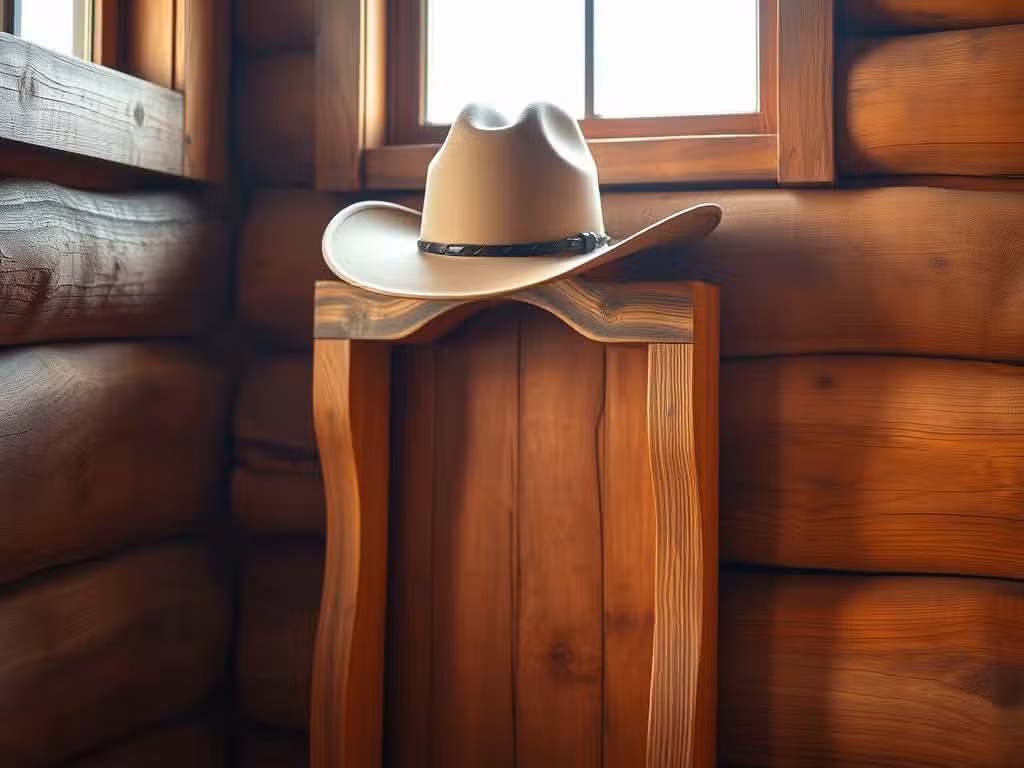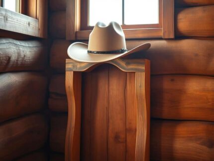 A-rustic-cowboy-hat-hanger-stands-tall-its-wooden-frame-weathered-by-the-elem...